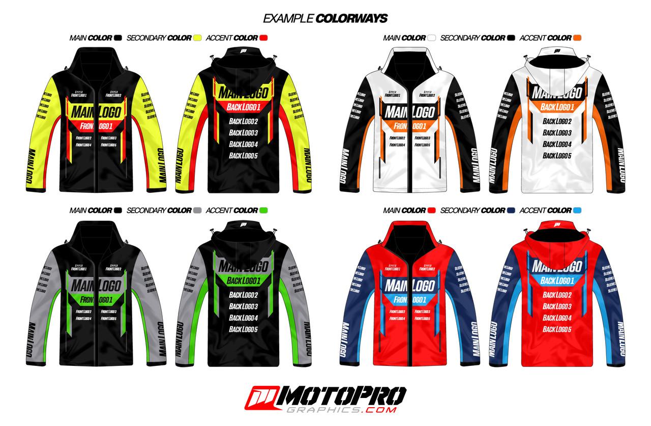 Our custom jackets are created using sublimation printing, allowing for maximum customization featuring your choice of colors and sponsors or business logos. Perfect for race teams and personnel.