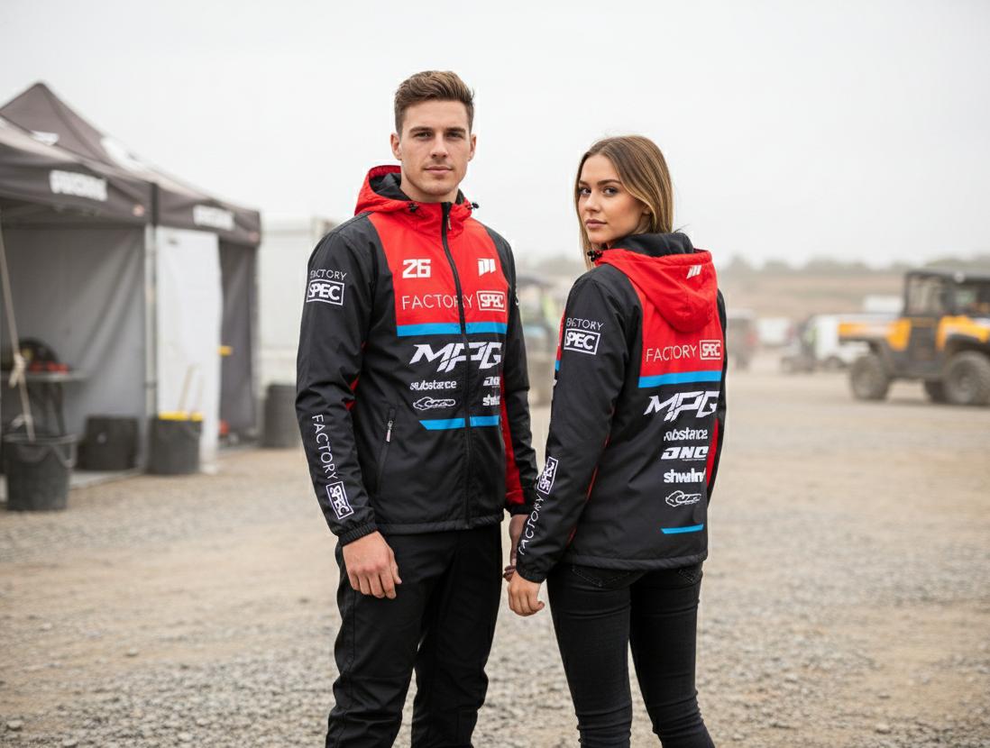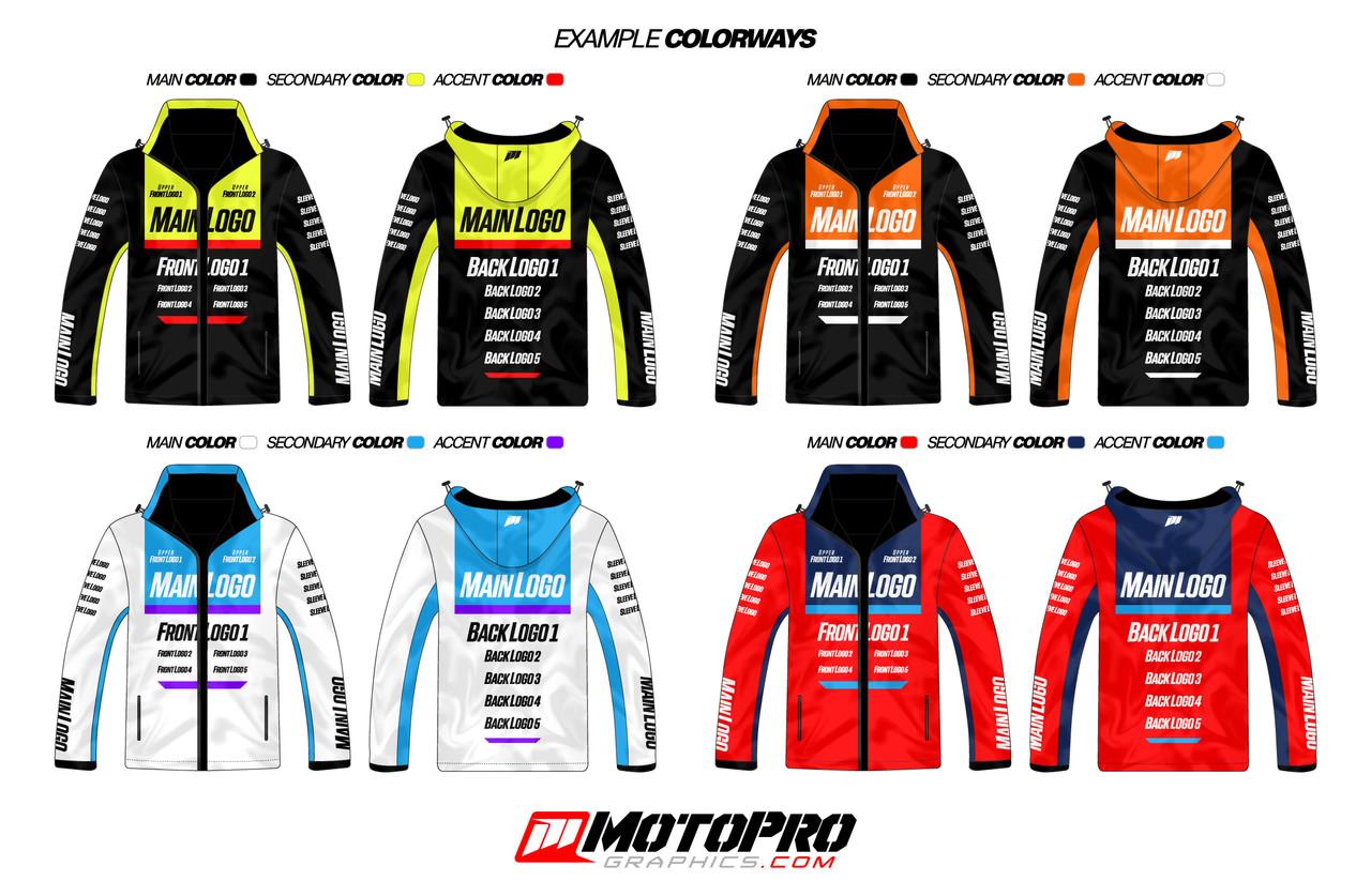 Our custom jackets are created using sublimation printing, allowing for maximum customization featuring your choice of colors and sponsors or business logos. Perfect for race teams and personnel.