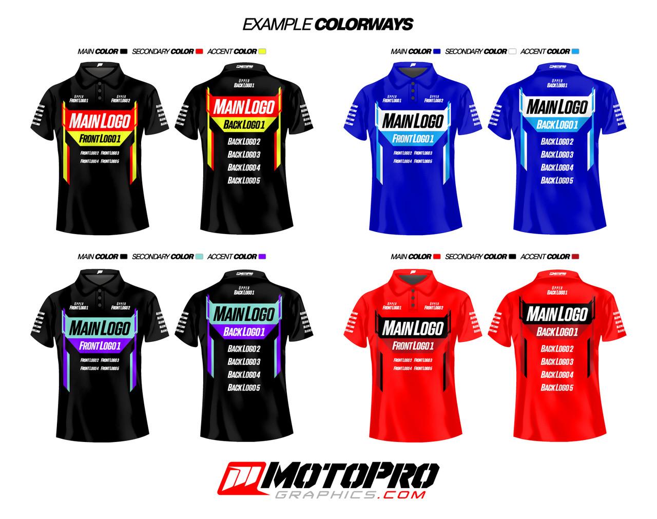 Our pit shirts are created using sublimation printing, allowing for maximum customization featuring your choice of colors, sponsors or business logos. Perfect for race teams and personnel. A proof or "mockup" will be emailed to you once your order is built, allowing you to preview your order before it goes into production.