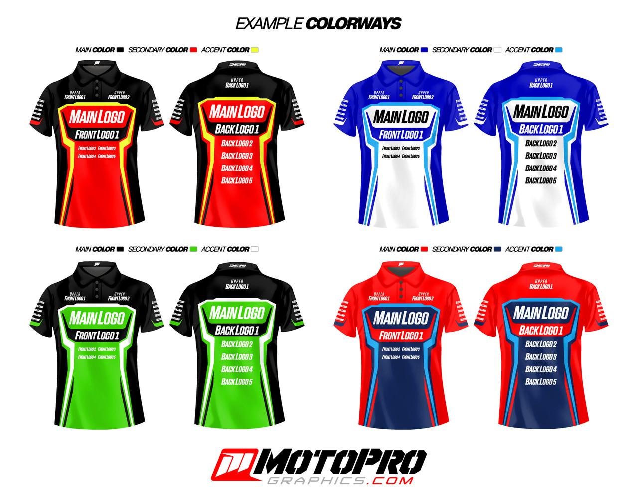 Our pit shirts are created using sublimation printing, allowing for maximum customization featuring your choice of colors, sponsors or business logos. Perfect for race teams and personnel. A proof or "mockup" will be emailed to you once your order is built, allowing you to preview your order before it goes into production.