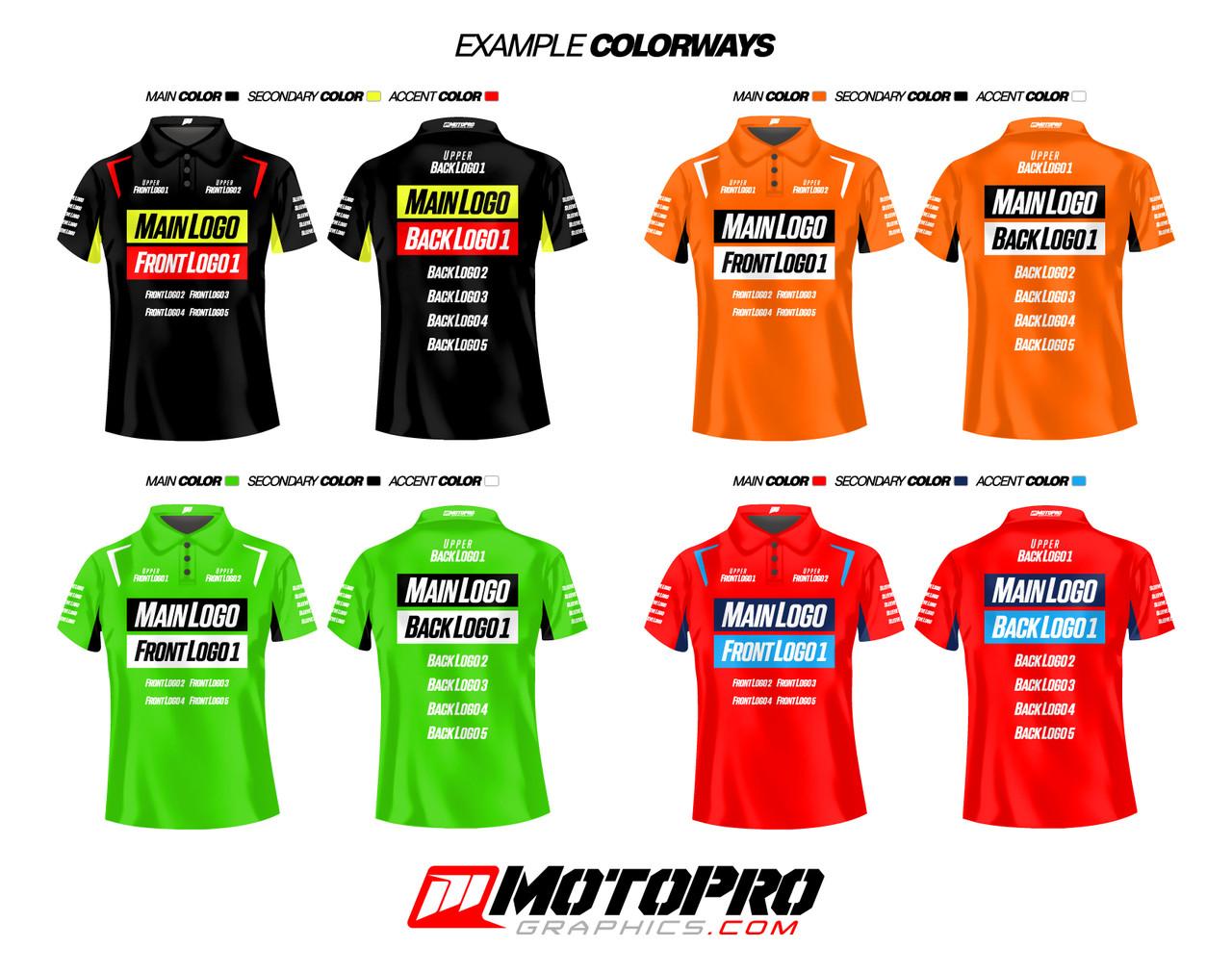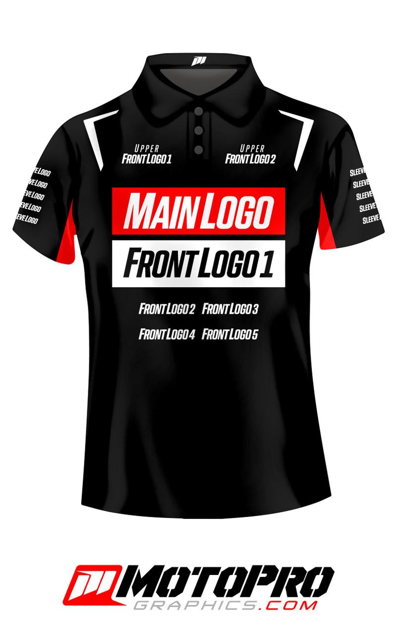 Our pit shirts are created using sublimation printing, allowing for maximum customization featuring your choice of colors, sponsors or business logos. Perfect for race teams and personnel. A proof or "mockup" will be emailed to you once your order is built, allowing you to preview your order before it goes into production.