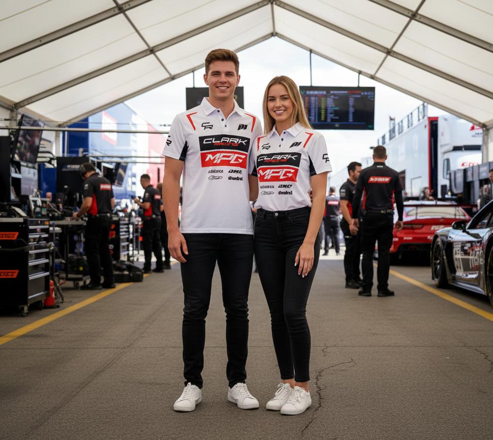 Built with durable, high-performance polyester fabrics, designed to keep you cool and comfortable at the race track or venue.